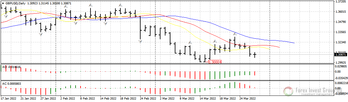Так, фунт/доллар после коррекционного отката к 1.3300, не сумев возобновить восходящее движение, упал ниже 1.3100. Если покупателям стерлинга не удастся в ближайшее время перехватить инициативу, снижение может продолжиться в направлении нижнего фрактала на дневном таймфрейме у 1.2990. Возобновление восходящего тренда ждем после уверенного укрепления выше линий аллигатора, то есть области 1.3300-1.3200. Входящий фундамент из Великобритании не особо позитивный, что дополнительно давит на фунт. Так, данные по объему ипотечного кредитования в Великобритании за февраль оказались хуже прогноза: 4,67В против 6,0В. Также снизилось число одобренных ипотечных кредитов за аналогичный период.