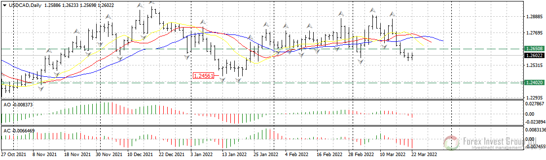 В паре доллар/канадец также наблюдаем укрепление канадской валюты. Цены на нефть после недавней коррекции продолжили рост, что позволило продавцам пары usd/cad уверенно закрепиться ниже линий аллигатора на дневном таймфрейме. Ключевой отметкой для продавцов гринбек выступает 1.2600, и если будет уверенное укрепление ниже данного уровня, нисходящее движение продлится как минимум к 1.2440-1.2400. Восходящий откат в рамках основного нисходящего тренда возможен к 1.2700-1.2650.