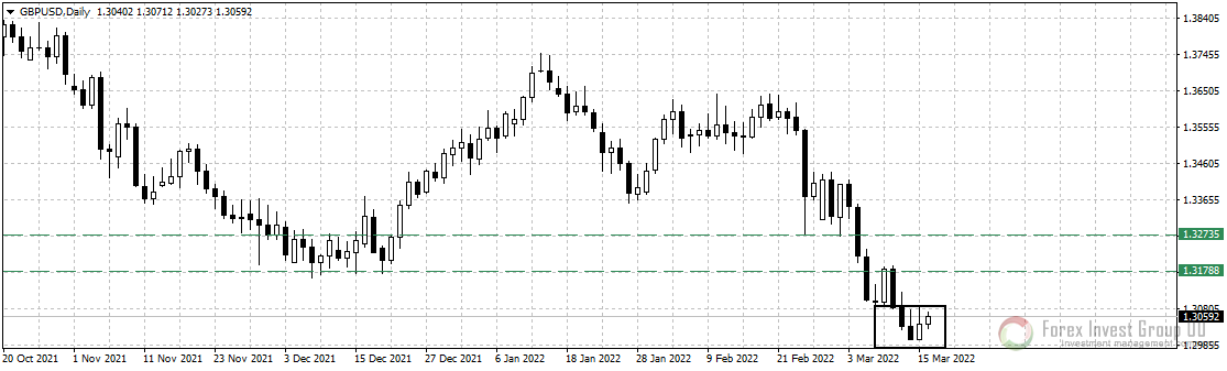 Единая европейская валюта перешла в режим консолидации и на данный момент торгуется в узком флетовом коридоре между 1.1000-1.0900. На недельном таймфрейме у нас “доджи”, что свидетельствует как минимум о равноправии между продавцами и покупателями. И о том, что, как для продолжения нисходящего движения, так и для формирования разворотной комбинации нужен дополнительный фундаментальный драйвер. Вполне возможно, что такой драйвер основные валютные пары получат уже сегодня вечером после заседания ФРС. То, что американский регулятор повысит ставку, уже ни в кого не вызывает сомнений, но важно то, на сколько она будет поднята и какими будут дальнейшие действия ФРС в этом году.