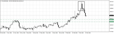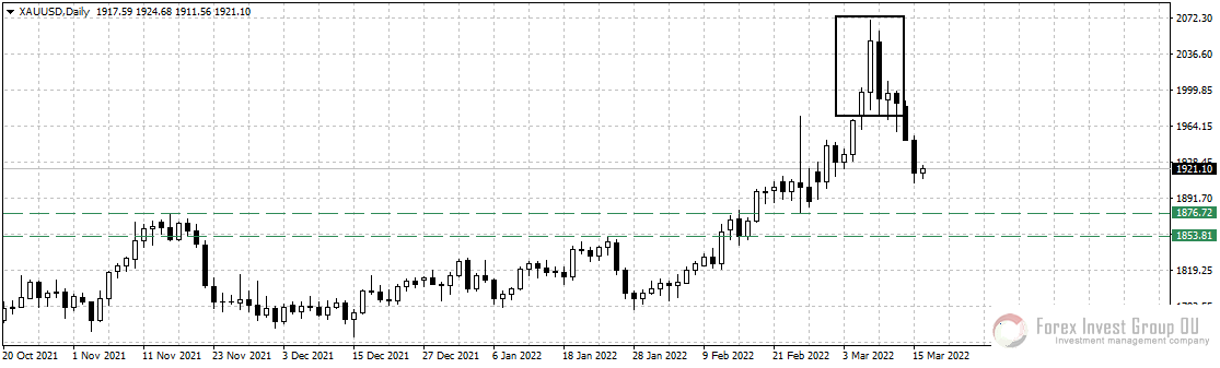 Драгоценные металлы также отскочили от экстремуов 2020 года в предверии заседания ФРС. Возможность переговоров между Украиной и Россией и укрепление грибек перед заседанием ФРС позволили продавцам золота взять в отработку комбинацию "медвежье полощение" на дневном таймфрейме. Если нисходящее движение продолжится, ждем теста 1870.00-1850.00.