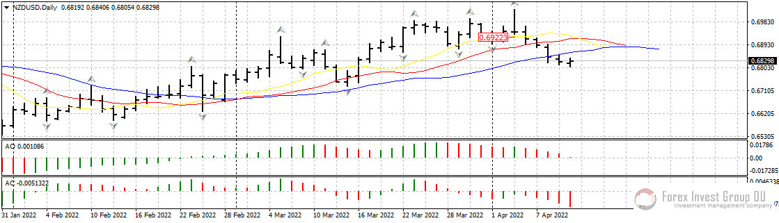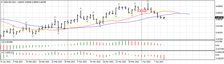 Для новозеландской валюты ближайшие торговые сессии будут очень важны в плане входящего фундамента. Завтра ранним утром состоится заседание РБНЗ, на котором по прогнозам аналитиков будет повышена базовая процентная ставка на 25 базисных пунктов. Технически по паре наблюдаем развитие нисходящего тренда после формирования разворотного бара от пятого апреля с точкой входа у 0.6930.