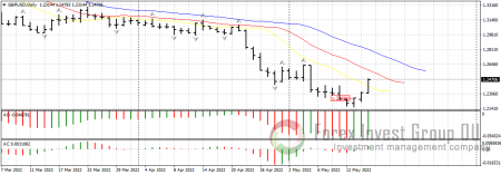 FxSignal 17-05-2022, 16:00 735 Аналитика, прогнозы валютного рынкаЭкспоненциальный рост американской валюты, который можно было наблюдать в начале мая, немного замедлился, что дало возможность основным валютным парам сформировать разворотные комбинации для коррекционного отката.