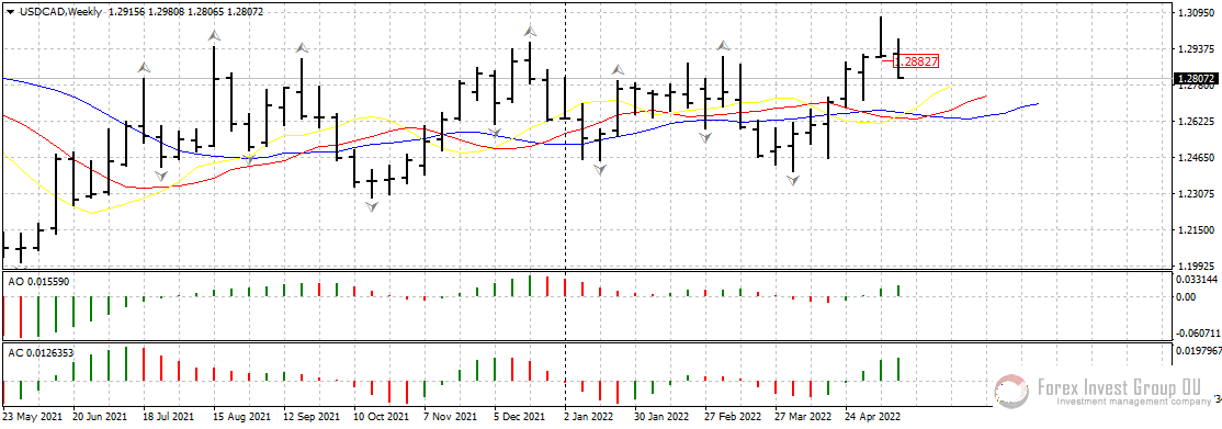 Покупатели гринбек в паре usd/cad не сумели справиться со значимым сопротивлением у диапазона 1.3070-1.3000, и на прошлой неделе сформировали разворотный бар на продажу на недельном таймфрейме с точкой входа у 1.2890. На данный момент сигнал в отработке, цена стремительно движется к поддержке у линий аллигатора. Если диапазон 1.2700-1.2600 окажет поддержку паре, можно будет рассчитывать на повторный подход к 1.3000. В противном случае нисходящий откат может перерасти в полноценный тренд.