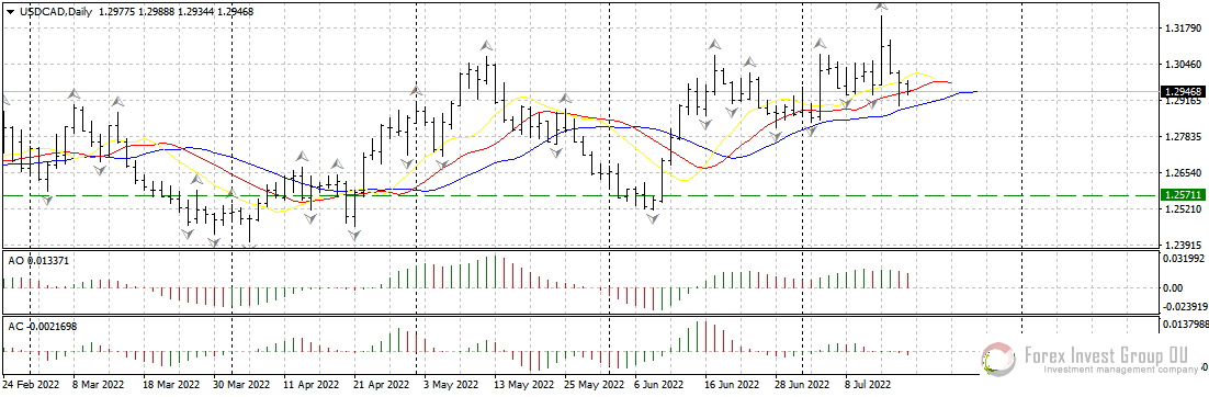 В паре доллар/канадец наблюдаем пример неудачного выхода из флетового коридора. Длительное время пара торговалась между 1.3050-1.2850. Неделю назад покупатели гринбек сумели сломать сопротивление у верхней границы и протестировали 1.3200. Но пробой оказался ложным и на данный момент цена вернулась ниже 1.3000 и тестирует поддержку у линий аллигатора на дневном таймфрейме. Если в ближайшие торговые сессии мы увидим пробой 1.2900, можно будет рассчитывать на продолжение нисходящего движения к 1.2500. Возобновление роста возможно только после уверенного укрепления выше 1.3000.