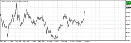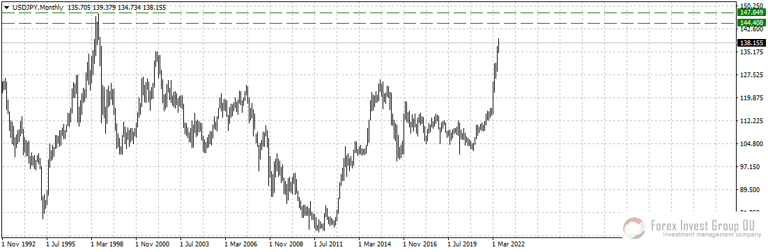 Пара доллар/иена мало помалу приближается к 140.00. Завтра ранним утром состоится заседание Банка Японии, но покупатели jpy не очень на него рассчитывают. Ведь японский регулятор принадлежит к числу тех, кто пока не собирается ужесточать кредитно-денежную политику. Рекордное ослабление национальной валюты, судя по всему, чиновников не беспокоит, и если завтра не будет сделано соответсвующих заявлений о смене курса регулятора, пара usd/jpy продолжит расти. Цели покупателей гринбек ясно видны на месячном таймфрйме. Это экстремумы 1998 года у диапазона 147.00-144.00.