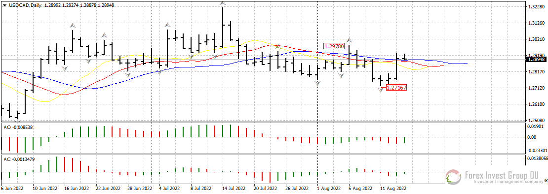 Не сумела развить восходящее движение и канадская валюта. На прошлой неделе после выхода данных по инфляции в США пара usd/cad сломала поддержку у 1.2800 и ушла ниже линий аллигатора на дневном таймфрейме. Так как развитие нисходящего тренда замедлилось, покупатели гринбек нащупали поддержку чуть выше 1.2700 и вернулись выше линий аллигатора на дневном таймфрейме.