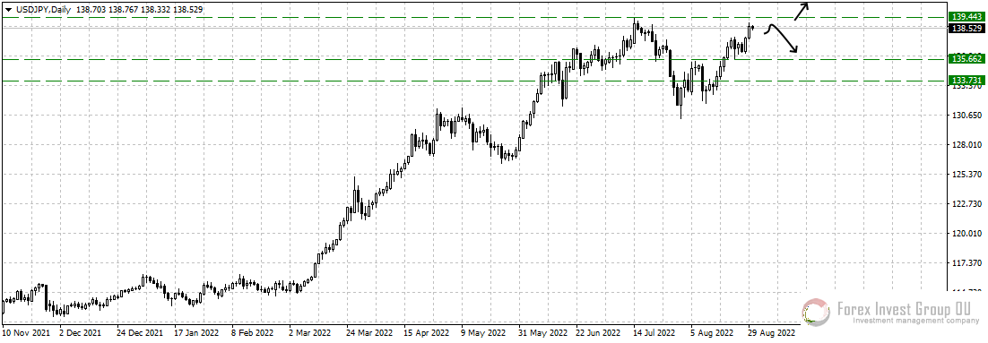 На прошлой неделе после выступления Джерома Пауэлла доллар резко вырос. Такое молниеносное укрепление гринбек неудивительно. Ведь председатель ФРС четко заявил о дальнейшем ужесточении кредитно-денежной политики, и о том, что американский регулятор будет использовать все имеющиеся инструменты для обуздания существующей инфляции. После симпозиума в Джексон-Хоуле больше половины экспертов предполагают, что ФРС в сентябре повысит ставку на 75 базисных пунктов. Ультраястребиный настрой американских чиновников способствует росту доллара, но, вместе с тем, нельзя исключать нисходящей коррекции перед началом очередного восходящего импульса.