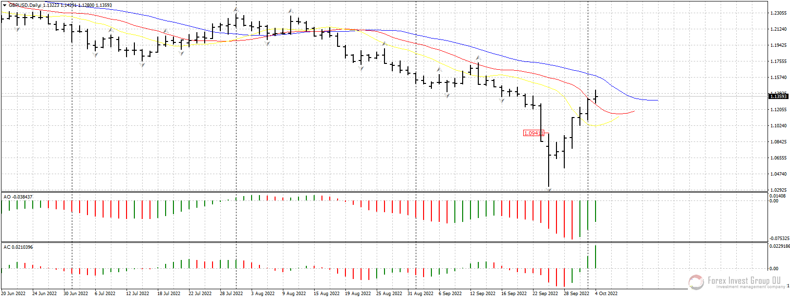 Прошедшая пятидневка оказалась фатальной для британской валюты, так резко фунт не снижался даже во время оглашения итогов по Brexit. Тем не менее, у 1.1500 покупателям фунта удалось найти поддержку и укрепиться более чем на 500 пп. По сути, мы наблюдаем отработку разворотного бара на покупку от 26 сентября с точкой входа у 1.0930. Ближайшие цели, куда можно ожидать продолжения восходящего движения, расположены у сопротивления в виде линий аллигатора на дневном таймфрейме. Отменой восходящего сценария станет уход ниже 1.1300.