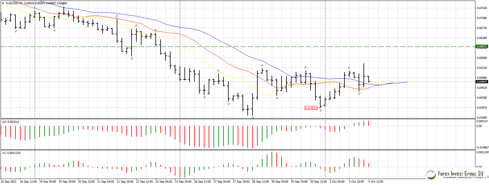 Отступила от минимумов и австралийская валюта. На прошлой неделе пара aud/usd торговалась ниже 0.6400, а вчера сумела cкорректироваться к 0.6540. Восходящая коррекция по паре была прервана после утреннего заседания РБА. Как оказалось, чиновники подняли ставку всего на 0,25%, в то время когда эксперты прогнозировали подъем на 0,50%. На такое решение пара отреагировала разнонаправленной шпилькой между 0.6550-0.6460. На таймфрейме н4 нисходящее движение уперлось в поддержку у линий аллигатора, в случае слома нижнего фрактала у 0.6450 нисходящее движение продолжиться в направлении сентябрьских минимумов текущего года у 0.6360.