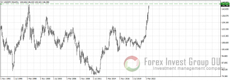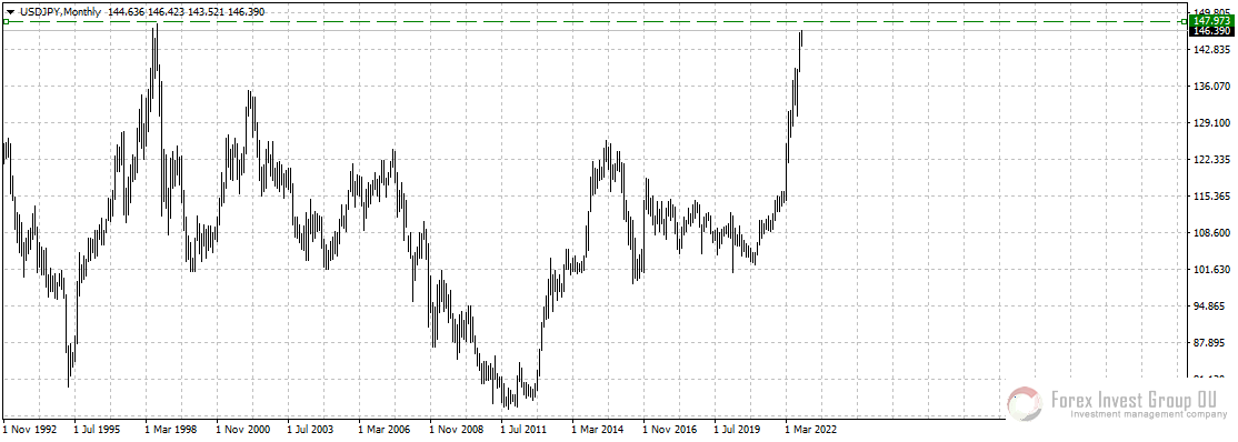 Японская иена продолжает падать. Пара jpy/usd неумолимо приближается к максимумам 1998 года у 147.70. Валютные интервенции Банка Японии дали кратковременный эффект и росту пары не поспособствовали. Изменить текущую ситуацию и прервать восходящий тренд по гринбек может или изменение планов американского регулятора, или внушительное падение инфляции в США.