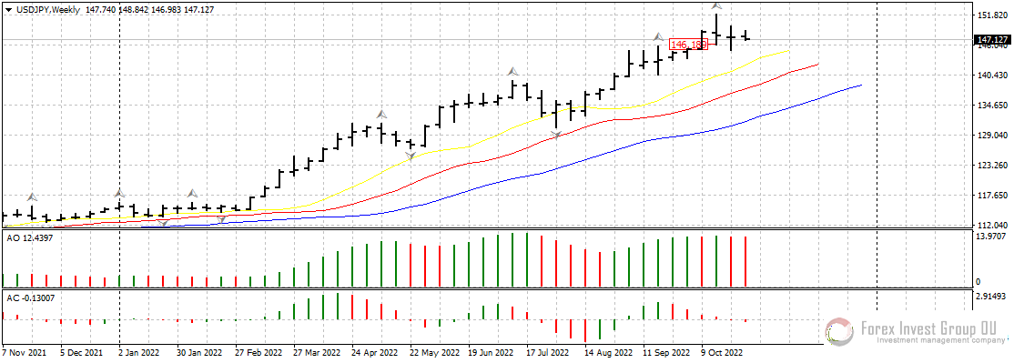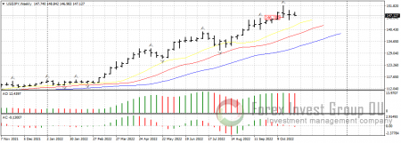После резкого нисходящего рывка, вызванного валютными интервенциями Банка Японии, пара доллар/иена нашла убежище в довольно широком флетовом коридоре между 149.00-146.00. Вчерашняя публикация позитивных данных по индексу деловой активности в производственном секторе (PMI) США способствовала росту пары к верхней границе. Но, как видим, уйти выше 148.80 не получилось, и с утра можно наблюдать нисходящее движение в направлении 146.00-145.00. На недельном таймфрейме у нас разворотный бар на продажу с точкой входа у 146.00. Но при входах в продажи следует учитывать, что по паре доллар/иена в течение этого года наблюдаем очень сильный восходящий тренд, и если ФРС не будет менять вектор кредитно-денежной политики, пара с легкостью может обновить недавний максимум у 151.60.