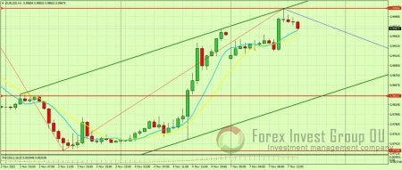 По максимумам двух дней сформировался новый восходящий канал. Сейчас цена отошла от верхней границы и может продолжить движение к нижней границе.