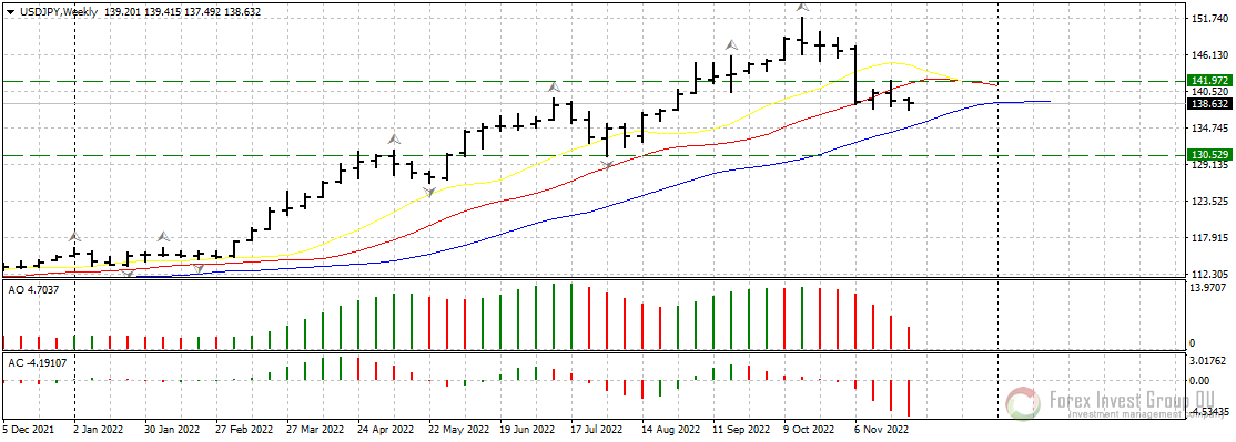 Так, продавцы пары доллар/иена вчера пытались сломать важную поддержку у 138 фигуры и уйти ниже линий аллигатора на недельном таймфрейме. Осцилляторы АО и АС красного цвета, на дневном таймфрейме пара уже давно ниже линий аллигатора, что дополнительно свидетельствует в пользу развития нисходящего движения. Тем не менее, при входе в продажи следует учитывать тот факт, что недавнее снижение с 146.00 было очень резким, и перед очередным нисходящим рывком может быть восходящий откат к 142.00-140.00.