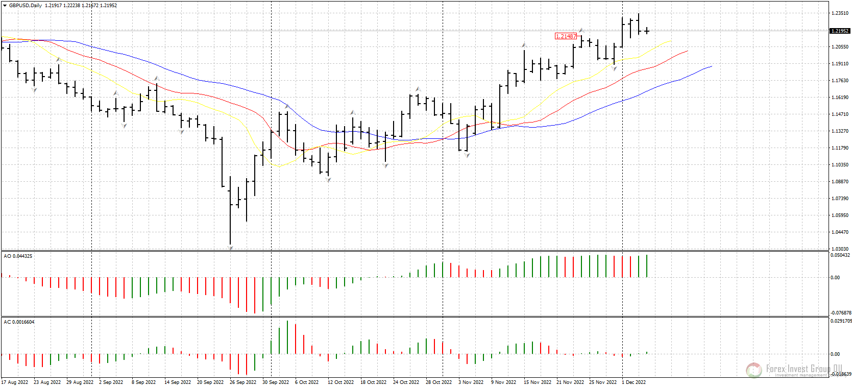 GBP/USDПара фунт/доллар на прошлой неделе сумела укрепится выше линий аллигатора на дневном