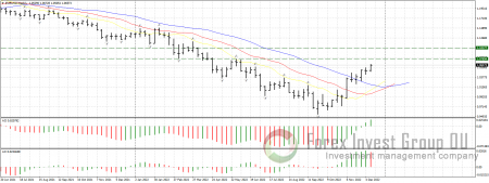 На недельном таймфрйме цена уверенно держится выше линий аллигатора, осцилятор АО зеленого цвета и выше нуля, что дополнительно свидетельствует в пользу покупок.