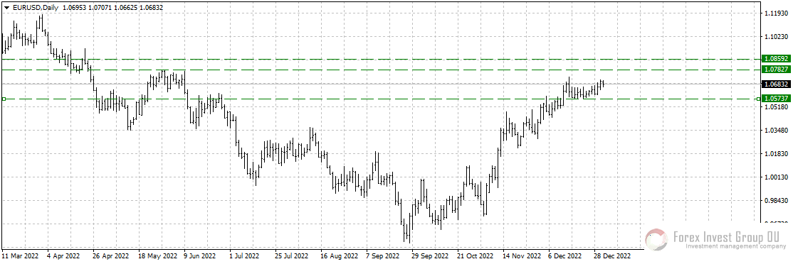 FxSignal 3-01-2023, 12:00 575 Аналитика, прогнозы валютного рынкаВ последнюю торговую сессию ушедшего года доллар терял позиции практически по всем направлением. Евро/доллар протестировал 1.0700, фунт/доллар пытался уйти выше 1.2100, а доллар/иена потерял больше 200 пп за одну торговую сессию. Сегодня с утра наблюдаем откат от пятничных движений и слабую волатильность, но если входящий фундамент ближайших торговых сессий окажется не в пользу гринбек, евро и фунт могут продолжить восходящее движение.