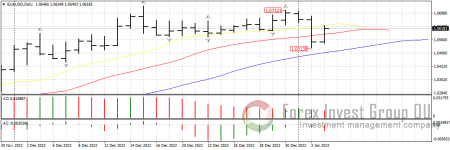 FxSignal 4-01-2023, 15:00 658 Аналитика, прогнозы валютного рынкаНачало 2023 года оказалось довольно позитивным для американской валюты. Фунт/доллар прорвал поддержку у 1.2000 и потерял больше 100 пп за пару часов, евро/доллар почти протестировал 1.0500, а доллар/иена сформировал разворотную комбинацию на покупку от 130.00. Тем не менее, продолжить вчерашние тренды валюты пока не могут. Скорее всего, основное движение мы увидим после выхода протокола последнего заседания ФРС, публикация которого запланирована на 22.00 по МСК.