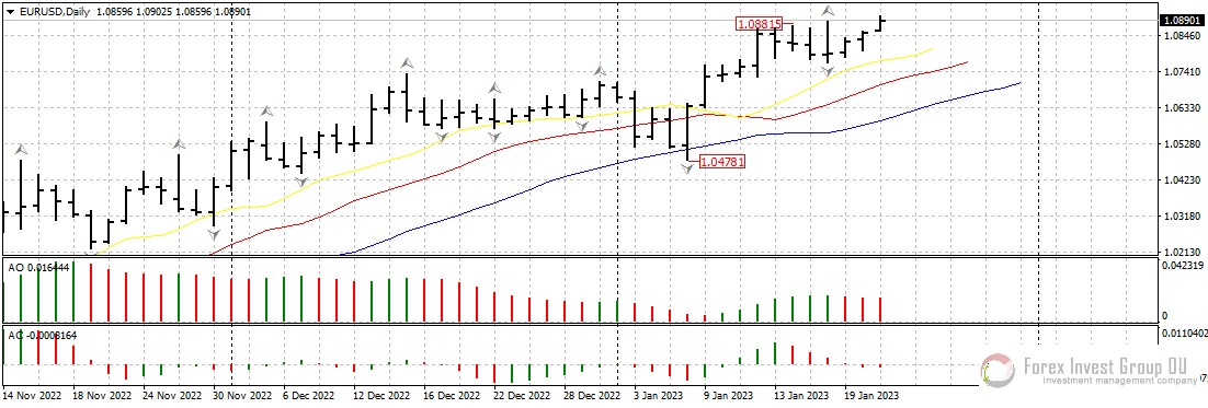 Сегодня в 20.45 по МСК будет выступать председатель ЕЦБ Кристин Лагард. Завтра в 12.00 по МСК выйдет ряд важных макроэкономических показателей из еврозоны, в частности индекс деловой активности в производственном секторе (PMI) за январь. Также на завтра запланировано выступление члена Наблюдательного совета Европейского центрального банка Керстинг Йокник. Если чиновники подтвердят скорое ужесточение монетарной политики, пара eur/usd с легкостью прорвет сопротивление у 1.0890 и продолжит рост как минимум к 1.1000. В противном случае ждем повторного теста 1.0500-1.0400.