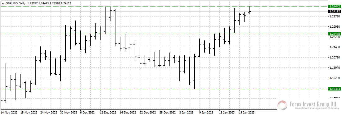 Как и ожидалось, пара gbp/usd сумела протестировать важное сопротивление у 1.2400. В то же время, обновить декабрьский максимум 2022 года пока не получилось, и дальнейшее развитие восходящего тренда под большим вопросом.