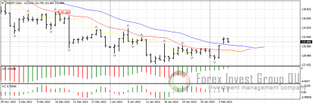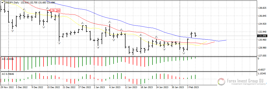 Американский федрезерв на первом в этому году заседании поднял ставку всего на 0,25%, что немного охладило пыл покупателей гринбек. Тем не менее, Джером Пауэлл все же заявил, что ставки будут оставаться высокими, сколько потребуется, и в случае необходимости ФРС может вновь вернуться к агрессивной монетарной политике. После пресс-конференции главы ФРС доллар снижался практически ко всем валютам. Но все же паре usd/jpy удалось нащупать поддержку чуть выше 128.00, а два дня спустя долларовые быки сумели сформировать разворотную комбинацию на покупку и укрепиться выше линий аллигатора на дневном таймфрейме. На данный момент пара консолидируется между 132 и 131 фигурами и тестирует зоны спроса и предложения. Если поддержка у 131.00 еще раз подтвердит свою силу, можно будет ожидать продолжения восходящего движения в направлении 137.00-135.00. В противном случае ждем возобновления нисходящего движения и повторного подхода к 128.00.