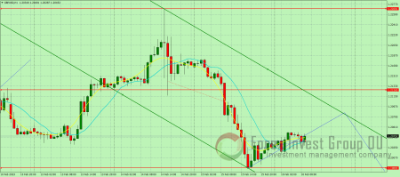 По минимумам двух дней сформировался новый нисходящий канал. Сейчас цена находится посредине канала и может продолжить снижение после приближения к верхней границе.