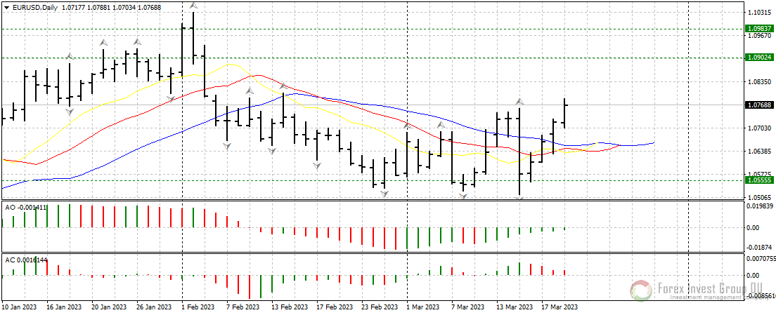 FxSignal 21-03-2023, 21:00 515 Аналитика, прогнозы валютного рынкаВалютные рынки продолжают пребывать в фазе неопределенности и хаоса. Кризис в банковской сфере временно стабилизирован, но, в тоже время, нельзя исключать новых банкротств в связи с оттоком средств инвесторов из-за всеобщей паники. Естественно, в сложившейся ситуации инвесторы выбирают защитные валюты-убежища, их роль на данный момент исполняют золото, иена и криптовалюты. Евро, фунт и сырьевые валюты торгуются в старых флетовых коридорах, ожидая завтрашнего вердикта от ФРС.