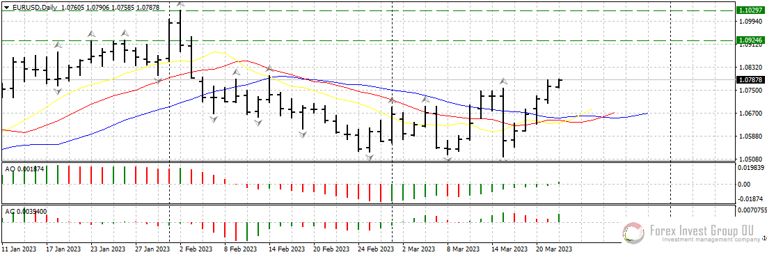 FxSignal 22-03-2023, 16:00 551 Аналитика, прогнозы валютного рынкаНа валютном рынке продолжает преобладать торговля в боковике. Так, доллар/канадец зажат между 1.3800-1.3700, евро/доллар пытается протестировать 1.0800, а фунт/доллар приблизился к 1.2300. Но вот будет ли смена среднесрочных тенденций, увидим уже за несколько часов. Сегодня в 21.00 по МСК состоится заседание ФРС, на котором возможна смена вектора кредитно-денежной политики, что в свою очередь может вызвать резкие колебания на валютном рынке.