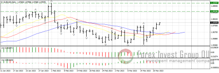 Единая европейская валюта также продолжает умеренное укрепление. Покупателям пары удалось укрепиться выше значимого уровня 1.0700, если ситуация не изменится, стоит ожидать продолжения роста к февральским максимумам у 1.1000-1.0900. Отменой восходящего сценария станет уход ниже 1.0500.
