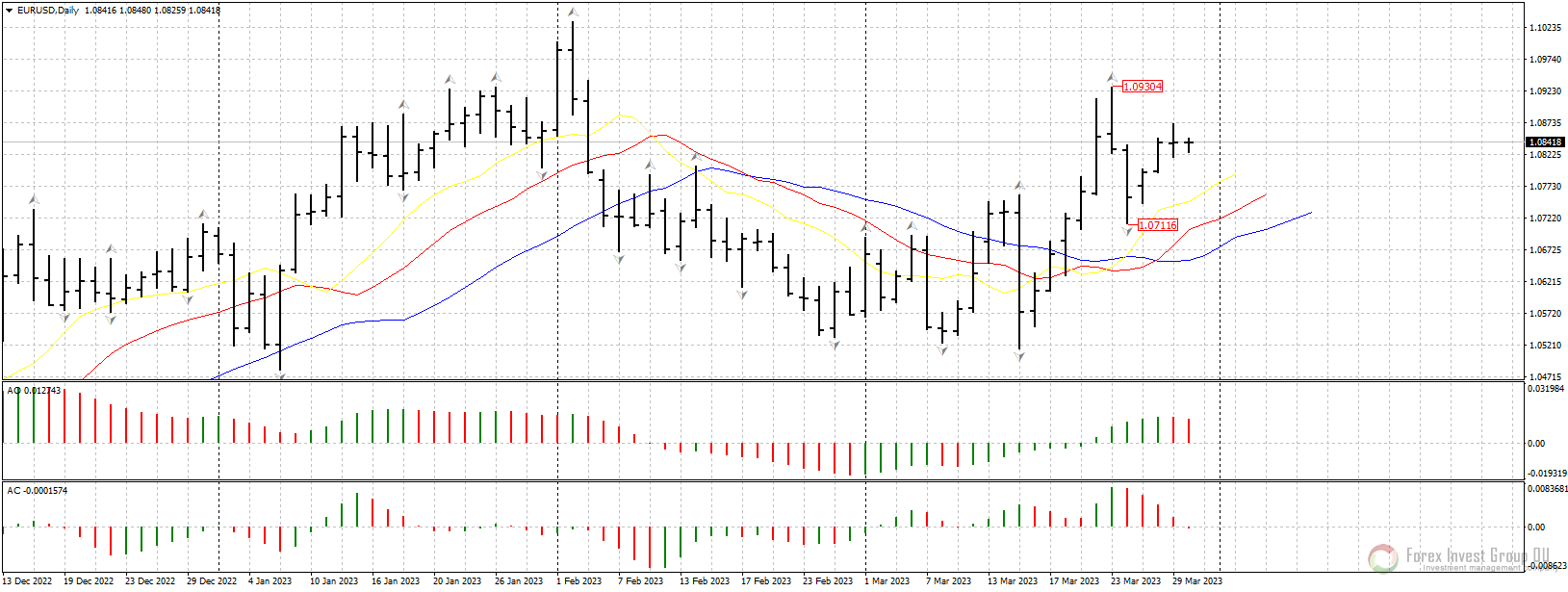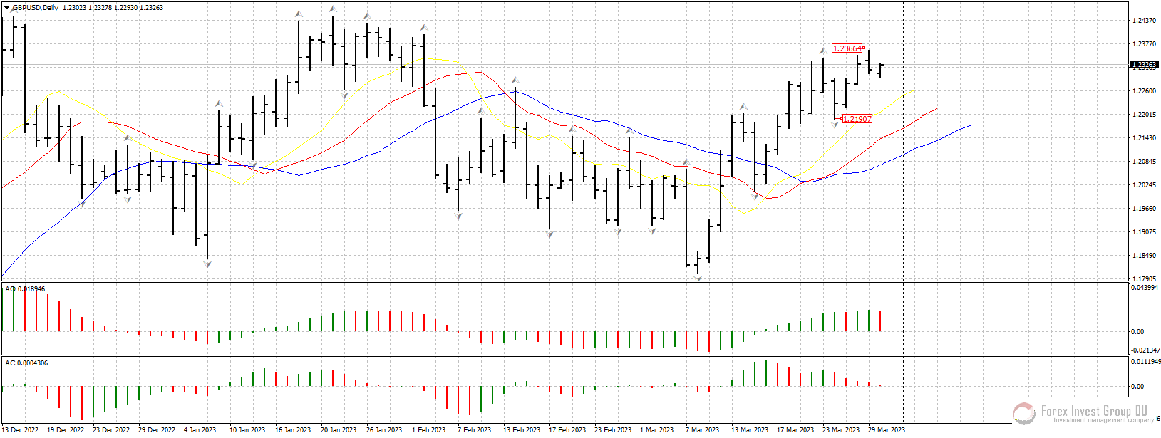 FxSignal 30-03-2023, 13:00 521 Аналитика, прогнозы валютного рынкаВ последние торговые сессии европейские валюты продолжают медленный, но уверенный рост к ранее достигнутым максимумам. Так, евро/доллар пытается протестировать недавний экстремум у 1.0930. Фунт/доллар колеблется чуть выше 1.2300, а доллар/иена растет, отрабатывая разворотный бар на покупку на дневном таймфрейме.