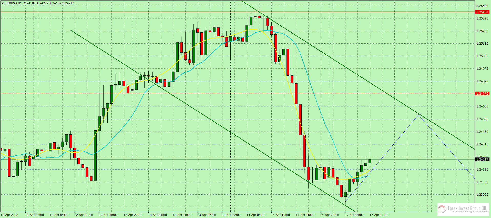 Пара GBP/USD торгуется с нисходящей динамикой, развивая сильный «медвежий» импульс, сформированный в конце прошлой недели. Инструмент тестирует отметку 1.2400 на пробой вниз, ожидая появления новых драйверов на рынке. Так, сегодня инвесторы будут следить за выступлением члена Комитета по монетарной политике Банка Англии Джона Канлиффа, а завтра — за отчётом по рынку труда за февраль-март. Текущие прогнозы предполагают, что уровень безработицы останется на прежней отметке 3,7%, при этом ожидается, что средняя заработная плата замедлится с 5,7% до 4,9% с учётом премий и с 6,5% до 6,2% без их учёта. В среду, 19 апреля, в Великобритании выйдет мартовский индекс потребительских и производственных цен. Инфляция в стране остаётся одной из самых высоких в Европе, потому этот показатель является очень важным. Нынешние прогнозы аналитиков предполагают коррекцию с 10,4% до 10,0% в годовом выражении и с 1,1% до 0,5% в месячном.