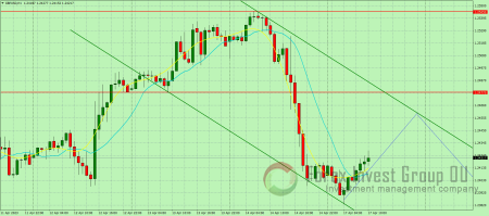 По минимумам недели сформировался новый нисходящий канал. Сейчас цена находится посредине канала и может продолжить снижение после приближения к верхней границе.