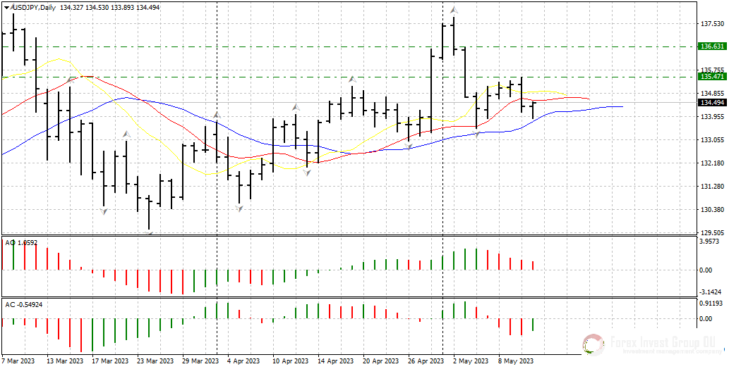 Продавцам американской валюты не удалось преодолеть 134 фигуру при попытке продажи usd/jpy. Цена отскочила от области поддержки у линий аллигатора на дневном таймфрейме и, скорее всего, в ближайшие торговые сессии мы увидим повторный тест 135.40-135.00. Из фундамента завтра ранним утром стоит обратить внимание на публикацию данных по основному индексу потребительских настроений (PCSI) Thomson Reuters/Ipsos в Японии.