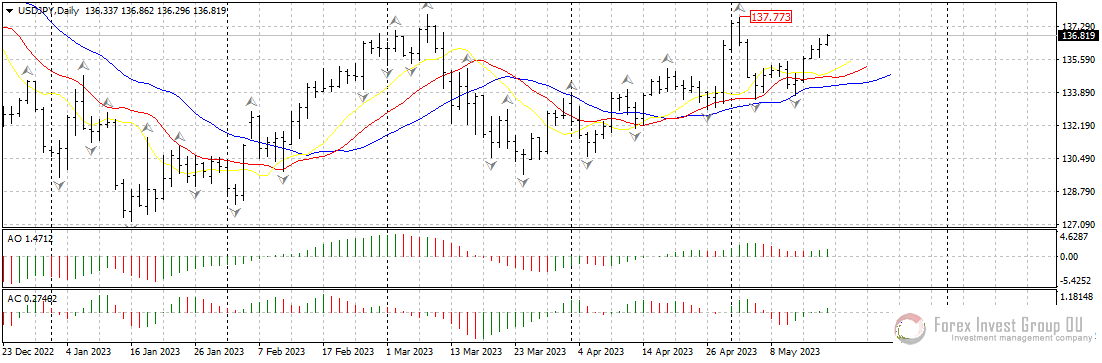 FxSignal 17-05-2023, 14:00 480 Аналитика, прогнозы валютного рынкаВозможный дефолт в США, о котором заявляют ведущие аналитики и эксперты, а также опасения по поводу стагфляции привели к резкому отскоку американской валюты, которая может вылиться в молниеносное продолжение среднесрочных трендов. Так, валютная пара usd/cad вчера нашла поддержку чуть выше 1.3400 и резко развернулась вверх, а usd/jpy готова тестировать максимумы текущего месяца у 138.00.