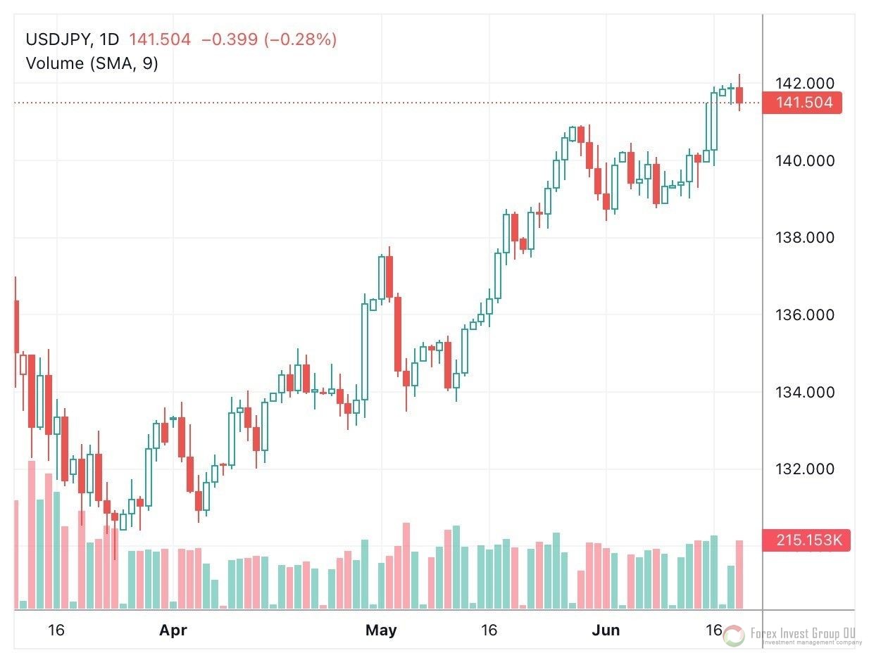 FxSignal 20-06-2023, 22:00 506 Аналитика, прогнозы валютного рынкаПрошлая пятидневка была экстремально насыщена фундаментом. Вышли данные по инфляции в США, европейский регулятор поднял базовую ставку, а ФРС наоборот взял ястребиную паузу. Как всегда отметился стабильностью Банк Японии - ставка по иене так и осталась самой низкой. Естественно, в таких условиях американская валюта торговалась разнонаправленно к основным валютным парам. Так, валютная пара доллар/иена сначала упала, а потом резко укрепилась к 142 фигуре. Евро/ доллару удалось уйти выше 1.0900, а валютная пара gbp/usd и вовсе обновила максимум текущего года и протестировала 1.2800.