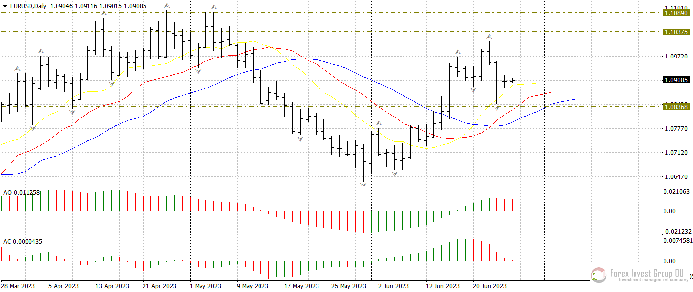Единая европейская валюта консолидируется в районе 1.0920-1.0860. После поднятия ставки европейским регулятором покупатели сумели протестировать психологический уровень 1.1000, но, тем не менее, развить полноценный восходящий тренд не получилось. На дневном таймфрейме пара тестирует поддержку у линий аллигатора, если диапазон 1.0900-1.0840 сдержит натиск продавцов, в течение нескольких торговых сессий можно будет ожидать повторного подхода к 1.1100-1.1000.