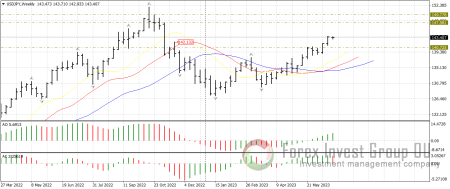 На прошлой неделе покупателям гринбек в паре доллар/иена удалось пробить максимум ноября прошлого года у 142.20 и укрепиться больше чем на 100 пп. На данный момент наблюдаем откат после столь резкого роста. Первичной целью для нисходящей коррекции выступает область 142.00-140.00. Тем не менее, если восходящий настрой по паре сохранится, ждем возобновления роста в направлении экстремумов 2022 года у 149.00-147.00.