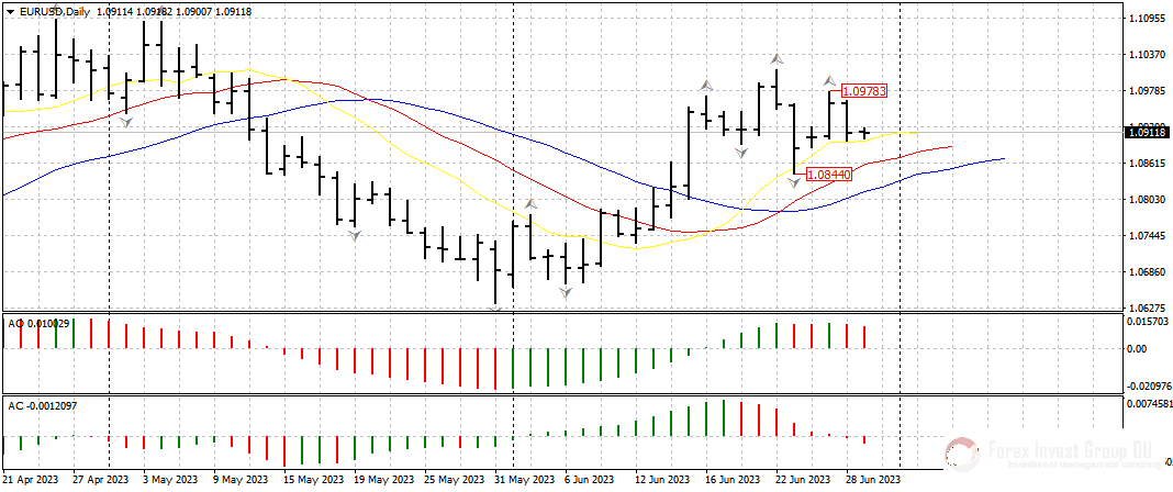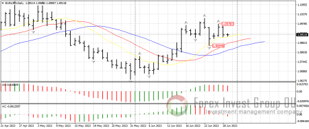 Единая европейская валюта, в отличие от иены и сырьевых валют, пока держится выше ключевых поддержек 1.0900-1.0850. Если покупатели пары удержат цену выше данного диапазона в течение нескольких торговых сессий, на следующей неделе можно будет ожидать еще одного подхода к 1.1100-1.1000. Слом 1.0900 может спровоцировать тест 1.0840, а если цена полностью уйдет ниже линий аллигатора на дневном таймфрейме, стоит готовиться к очередной нисходящей волне к целевому диапазону 1.0600-1.0500.