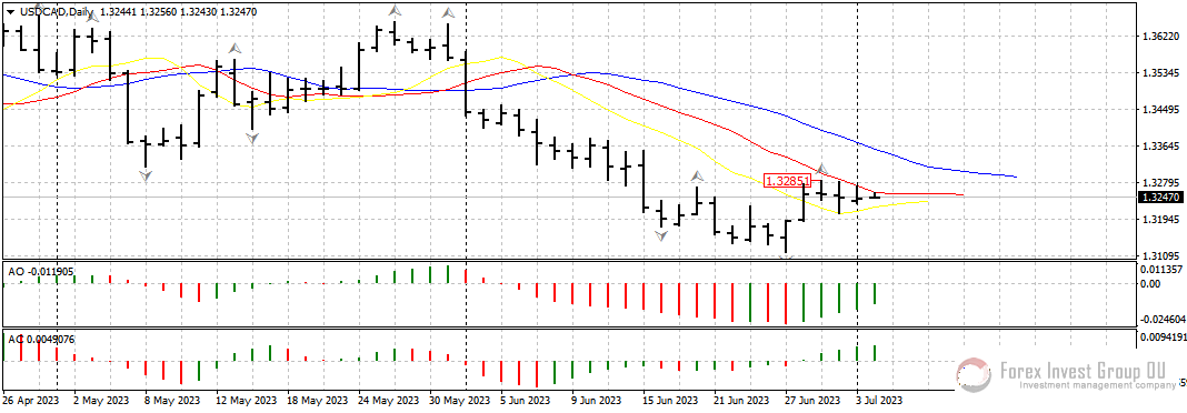 Валютная пара доллар/канадец, несмотря на наличие разворотного бара, так и не сумела уйти выше линий аллигатора на дневном таймфрейме. Если в ближайшие торговые сессии цена не уйдет выше 1.3300, можно будет готовиться к возобновлению нисходящего движения. Из фундамента сегодня ждем данные по индексу деловой активности в производственном секторе Канады за июнь.