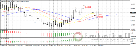 FxSignal 4-07-2023, 11:00 499 Аналитика, прогнозы валютного рынкаВ конце прошлой торговой пятидневки фунту, евро и сырьевым валютам удалось прервать нисходящий импульс, длившийся последние две недели, и успешно совершить коррекционный откат величиною от 100 пп. Дальнейшее движение указанных валютных пар будет зависеть от входящего фундамента текущей недели, который максимально насыщен разнообразными событиями. Так, сегодня свой вердикт огласил Резервный Банк Австралии, завтра выйдут данные по индексу деловой активности в секторе услуг еврозоны, и будет опубликован протокол последнего заседания ФРС, а в пятницу участники рынка ожидают отчет по занятости в США.