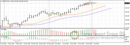 Минутки ФОМС также критически важны для дальнейшего укрепления usd/jpy. Если тон документа будет ястребиный, пара может нацелиться на тест 150 фигуры. В противном случае можем ожидать начала отработки разворотного бара на продажу на дневном таймфрейме от 30 июня с точкой входа у 143.00. Потенциальной областью для нисходящей коррекции выступает диапазон 142.00-140.00.