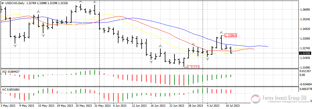 Покупателям американской валюты удалось частично отработать разворотный бар на покупку в паре доллар/канадец от 27 июня. Цена ушла выше 1.3300, но, тем не менее, развить полноценный восходящий тренд так и не получилось, и на данный момент цена тестирует поддержку у линий аллигатора на дневном таймфрейме. Если диапазон 1.3240-1.3200 окончательно перейдет в статус сопротивления, ждем теста нижнего фрактала у 1.3100.