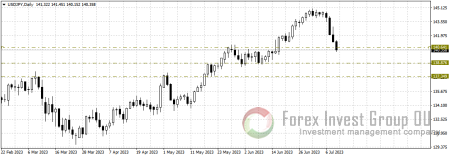 В паре доллар/иена наблюдаем отработку комбинации “темные облака”, которая привела к тесту 140.00. Область 141.00-140.00 очень важна для дальнейшего направления цены. Если продавцам удастся сломить данный диапазон, нисходящее движение может продолжиться к 137.00-135.00.