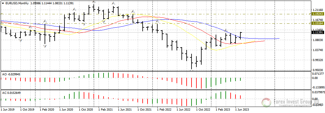 Единая европейская валюта на плохих данных из США сумела прорвать апрельский максимум текущего года и, скорее всего, направляется к диапазону 1.1700-1.1400. Данная область очень важна для дальнейшего ценообразования по паре. Здесь цена замедлялась и находила и поддержки, и сопротивления как в 2020 году, так и в 2022. Вероятно, пройти данную область без коррекции будет очень сложно.