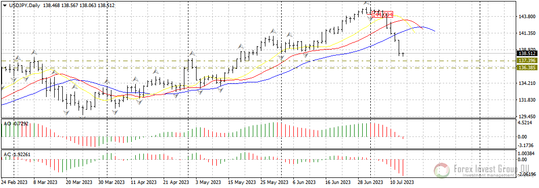 FxSignal 13-07-2023, 12:00 464 Аналитика, прогнозы валютного рынкаВчерашний день оказался роковым для американской валюты. Снижение индекса потребительских цен к 0,2% против 0,3%, которое прогнозировали аналитики, привело к резкому откату доллара в основных валютных парах. Так, валютная пара gbp/usd почти протестировала 1.3000, eur/usd ушла выше значимого сопротивления 1.1100, а пара usd/jpy прорвала поддержку у 140.00. Нисходящий импульс по доллару очень сильный, и, скорее всего, в ближайшие торговые сессии только усилится.