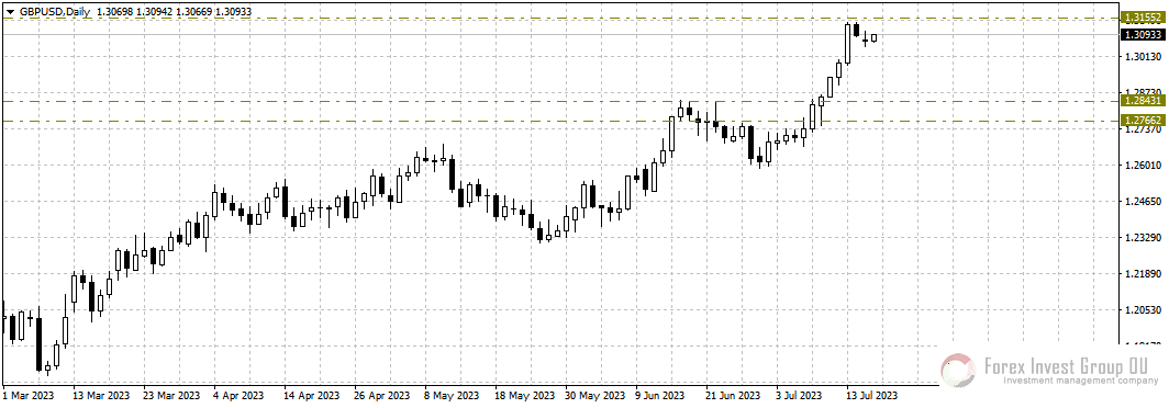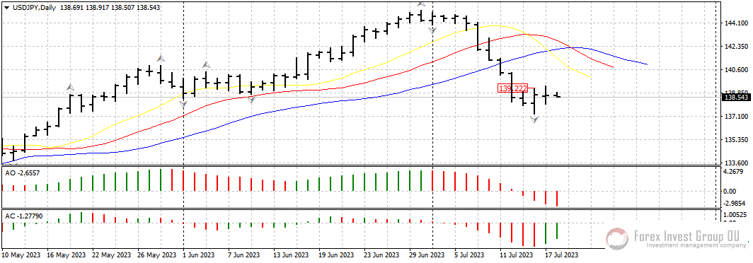 FxSignal 18-07-2023, 13:00 456 Аналитика, прогнозы валютного рынкаРезкое укрепление основных валют относительно доллара, которое мы наблюдали на прошлой неделе, понемногу замедляет темп. Так, в паре фунт/доллар сформирована комбинация «медвежье харами», валютная пара доллар/иена закрыла пятницу разворотным баром на покупку, а евро/доллар постепенно подбирается к 1.1300. Вполне реально перед началом нового восходящего импульса увидеть хорошую нисходящую коррекцию в ведущих валютных парах.