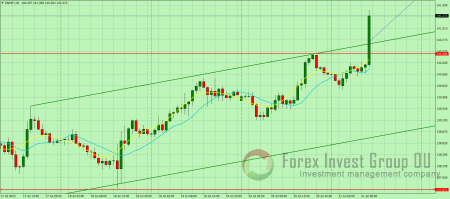По максимумам недели сформировался новый восходящий канал. Сегодня цена пробила верхнюю границу канала и может продолжить рост.