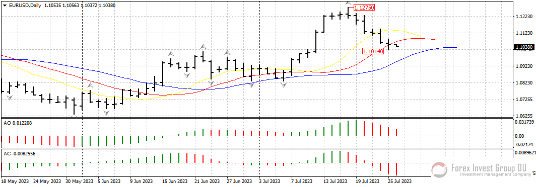 FxSignal 26-07-2023, 13:00 436 Аналитика, прогнозы валютного рынкаАмериканская валюта отступила от ранее достигнутых экстремумов и консолидируется у стратегических уровней, ожидая новостного драйвера. Так, продавцы евро/доллара натолкнулись на значимый уровень поддержки 1.1000, валютная пара фунт/доллар повторно протестировала 1.2800, а доллар/иена отскочила от 142 фигуры. В то же время сырьевые валюты в преддверии важного решения от американского федрезерва остаются в довольно узких флетовых коридорах.