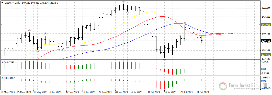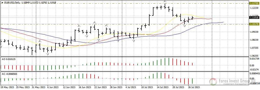 FxSignal 27-07-2023, 13:00 448 Аналитика, прогнозы валютного рынкаИтог вчерашнего заседания ФРС был воспринят участниками рынка довольно вяло. Ставку по usd, как и прогнозировали эксперты, подняли на 0,25%, но, как видим, особого укрепления по гринбек после такого решения не наблюдалось. Валютная пара доллар/иена выросла к 141.00, а потом снизилась на 100 пп, пара фунт/доллар закрепилась выше 1.2900, а покупатели евро/доллара повторно протестировали значимый уровень 1.1100. Судя по всему, для продолжения недавних трендов рынки нуждаются в дополнительных стимулах.