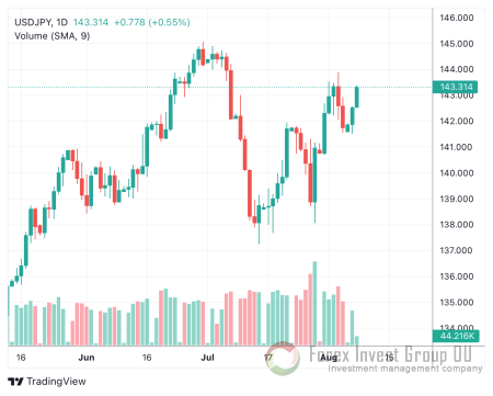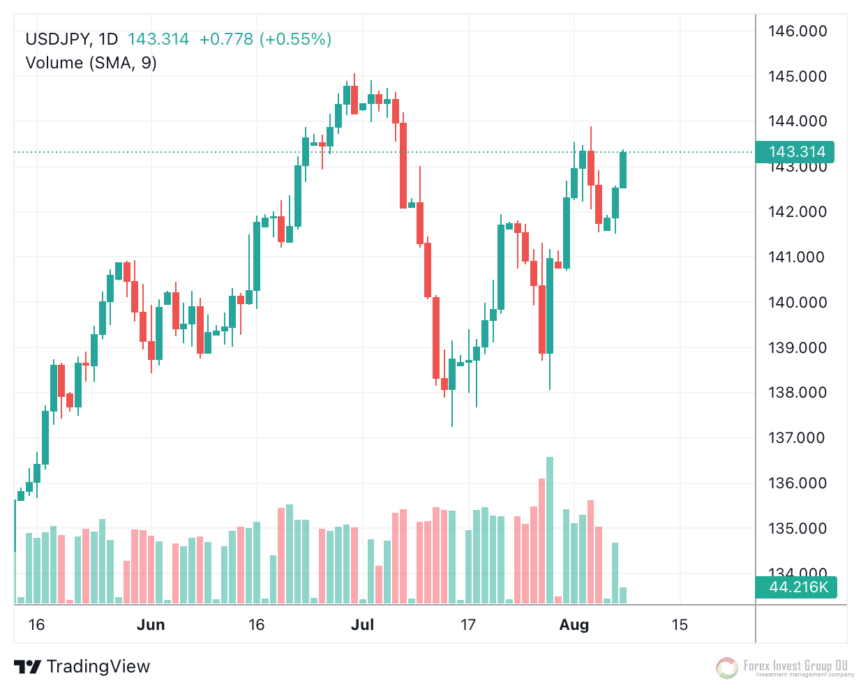 Пара доллар/иена одной из первой оправилась от пятничного падения и готова тестировать ближайшее сопротивление у 144 фигуры. Если прорыв данного уровня окажется успешным, вполне возможно продолжение роста к 150.00-148.00. Из фундамента сегодня в 15.30 по МСК ждем данные по сальдо торгового баланса в США за июль. Чуть позже будет опубликован краткосрочный прогноз ситуации на рынках энергоносителей от EIA.