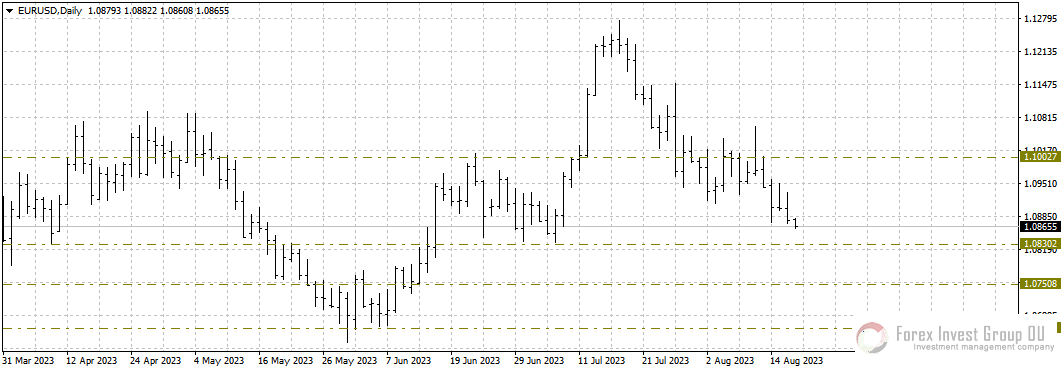 FxSignal 17-08-2023, 14:00 459 Аналитика, прогнозы валютного рынкаИнвесторы и участники рынка позитивно приняли вчерашнюю публикацию протоколов ФРС. Из документа следует, что большинство членов американского федрезерва считают, что борьба с инфляцией еще очень далека от завершения и может потребоваться продолжение повышения базовой процентной ставки в текущих условиях. Естественно, такие новости привели к мгновенному усилению гринбек в ведущих валютных парах. Валютная пара доллар/иена взлетела выше 146 фигуры, пара евро/доллар упала ниже 1.0900, а сырьевые валюты продолжили нисходящее движение к минимумам текущего года. Отличалась стабильностью разве что британская валюта. Пара gbp/usd сумела остаться выше 1.2700.